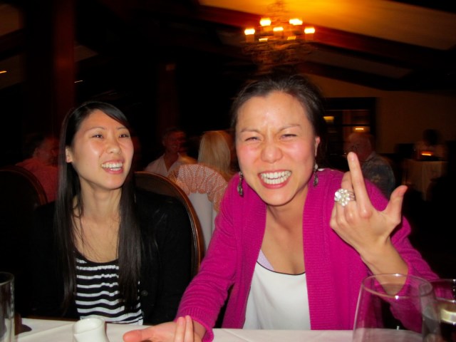 Amy was kind enough to put my hair up in a sock bun ten minutes before we left, but from some angles I like I looked a little too kung fu master. It didn’t matter; I always look better in person anyway. I had a good time scaring people at other tables, gentle families who wanted to take their mother somewhere nice with fish on the menu and dim lighting. Except the guy behind me couldn’t tell a story without peppering it with the F word. My poor friends, I hope they had a good time too, though most of the time they were probably thinking, “What is she laughing at?”