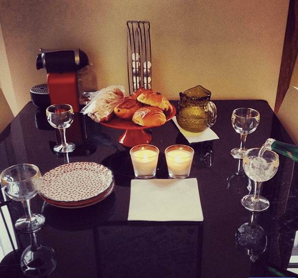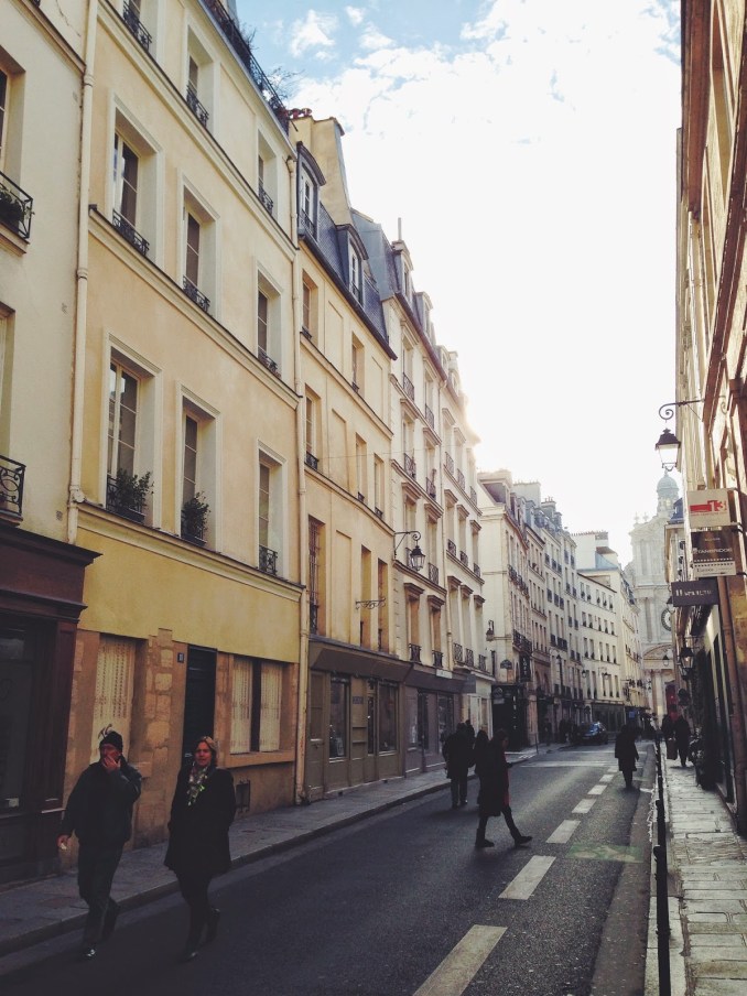Brunch with friends at their brightly lit studio in Le Marais, my favorite neighborhood. This photo was taken a bit early, before the entire spread was laid out, but there was champagne, Badoit, croissants, cheese, prosciutto, a tart and amazing tea from Mariage Freres. After the brunch our mission was to find the tea.