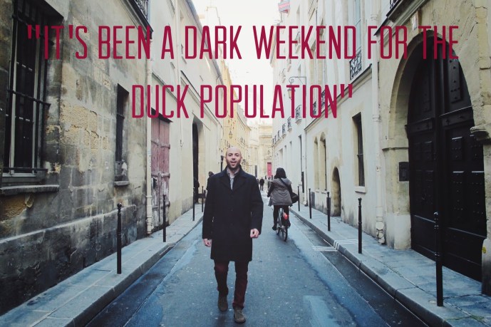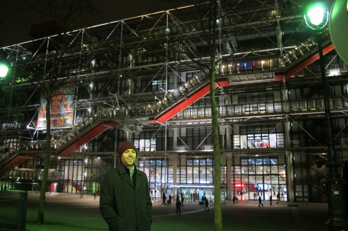 Tom and I had both been to Paris before. I first visited with my parents in spring of 2005 (when, thanks to my father’s adventurous tastes, we dined at the same Chinese restaurant twice)and again with my cousin Karen at the start of 2010. Tom had traveled there just after college with an ex-girlfriend as part of a five-week EuroTrip. “I was poor as fuck the first time I went to Paris,” Tom said, “It’ll be nice to not have to eat only baguettes and cheese with Vegemite, though even that was super delicious.” I pitied his girlfriend at the time. Though unemployed, I don’t travel with people who are poor as fuck (PAF). It just isn’t fun, you know? Thankfully Tom is no longer PAF, and I went about trying to secure some restaurant reservations. I considered too, implementing a few cultural things on our itinerary, but our time was short. The first most highbrow thing we did was stand in front of the Centre Pompidou on our first night there.