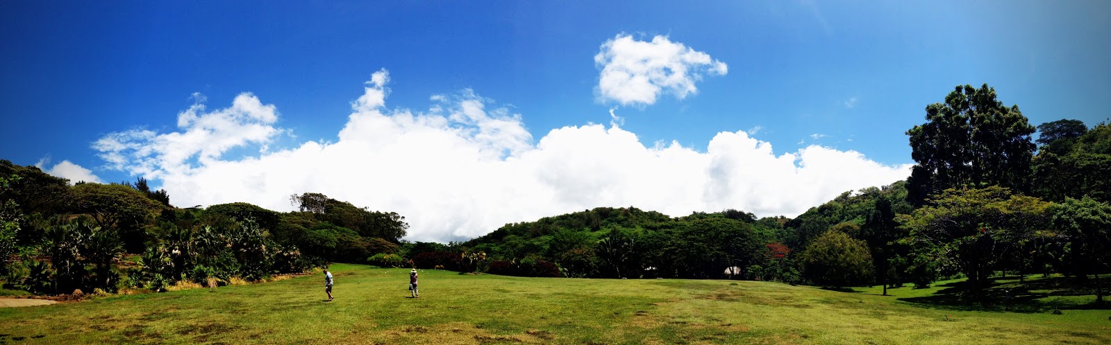 While we’re at it, here’s another panorama of McBryde Gardens which was exciting for me (my mother said simply, “Where are all the orchids? I thought there’d be orchids”) because parts of “Jurassic Park,” one of my favorite movies of all time, were filmed here. In this garden there is a restroom which was donated by Michael Crichton. I did not photograph the restroom, but it looks a lot like this one in the movie.