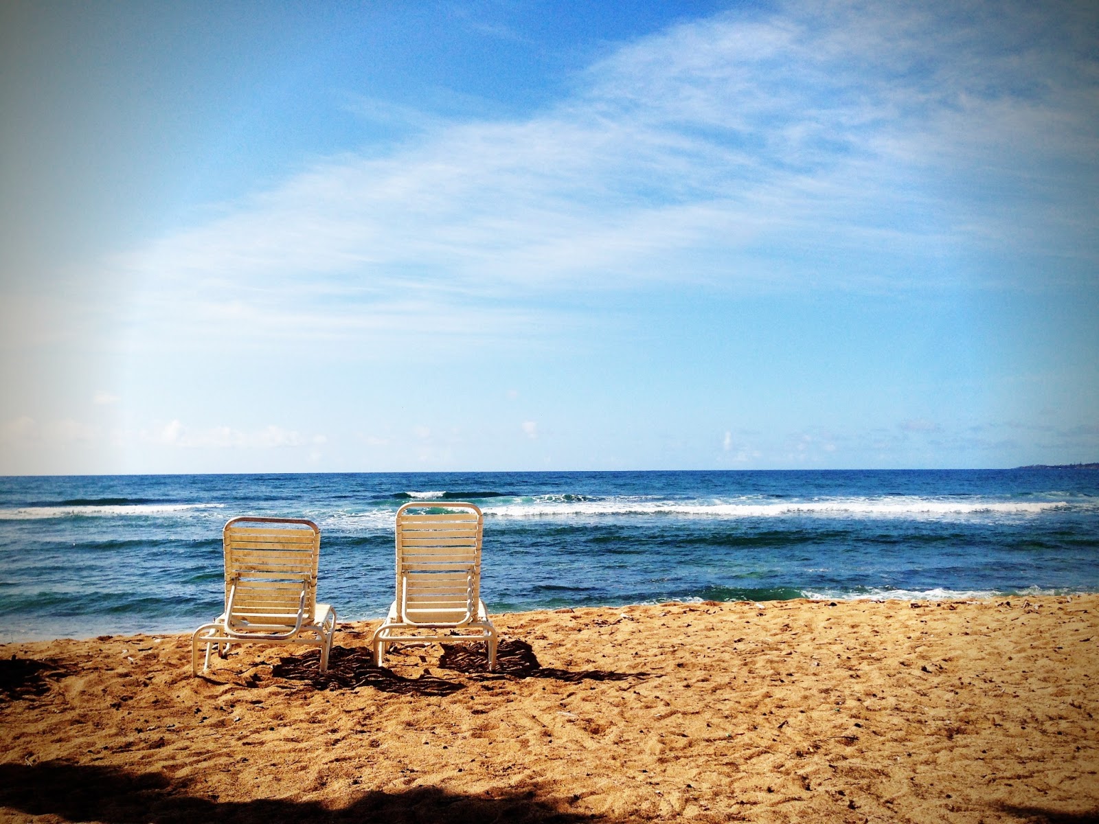 No more driving today. My mom and I are going to take the day strolling around our hotel, the Kauai Island Resort at the Beachboy, an older establishment with condo-style amenities, right on a beach that can get rather violent in the evening. But for now the water is calm and the sun, not so harsh.