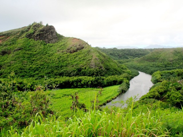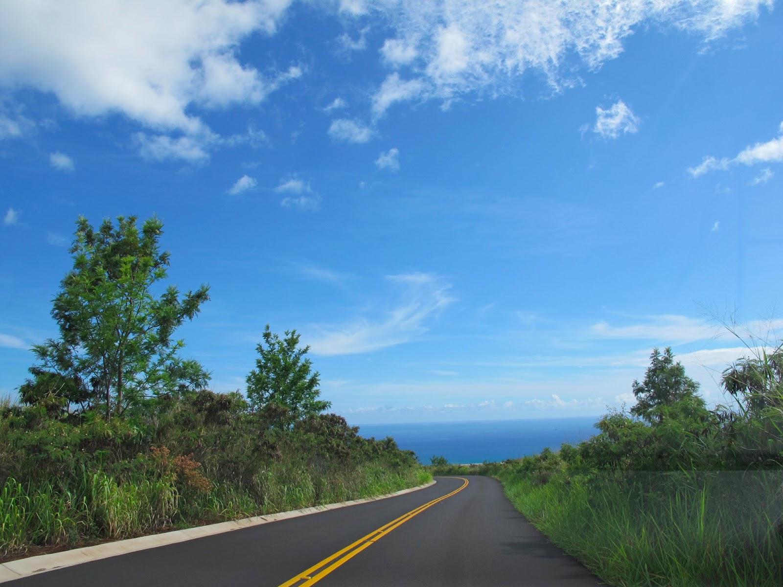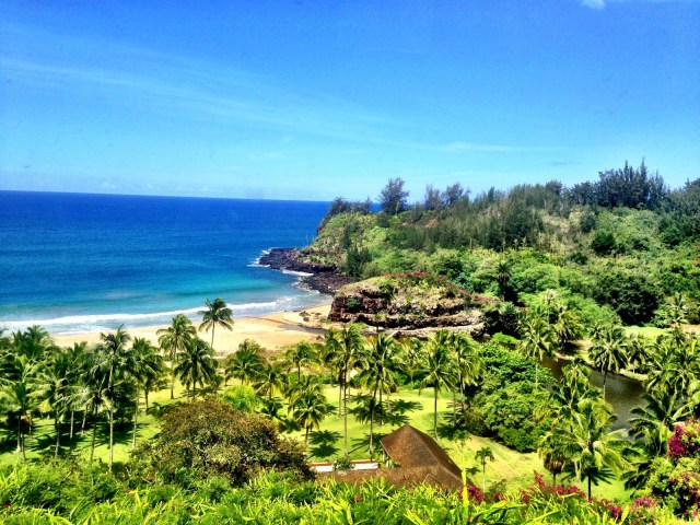 It’s Thursday, our last full day in Kaua’i and my mother and I have breakfasted on eggs, fresh papaya, coconut and Kellog’s Smart Start, which we bought at the Kmart adjacent to the farmer’s market we visited upon arriving. It’s rained a little every day, but thankfully mostly during times we were in the car, driving from coast to coast. I hate driving, but Kauai makes it easy (and also a bit dangerous, because I’m easily distracted) with view like this: