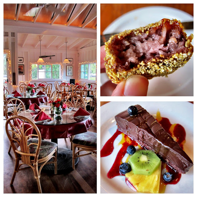 We came here on a recommendation while visiting the north shore and the famed Hanalei Bay. It’s a popular spot with tourists and locals alike and considered a “romantic treat” for people celebrating anniversaries, honeymoons, and engagements. There was a line outside the restaurant before it opened at 6PM, which gave the hostess a power trip. I let her take the trip because she was a stunning middle aged woman with arms like Linda Hamilton. I’m pretty sure she taught yoga during the day and never eats what’s pictured below. That said, the restaurant’s ambience and quality of food doesn’t equal their prices (our most expensive meal in Kaua’i) and afterward we decided to stick with fish markets. I do recommend their Hanalei Taro Fritters (don’t order the rest of the appetizers), Vegan Chocolate Silk Pie, and Deep Fried Macadamia Coconut Crusted Ice Cream (photo later).