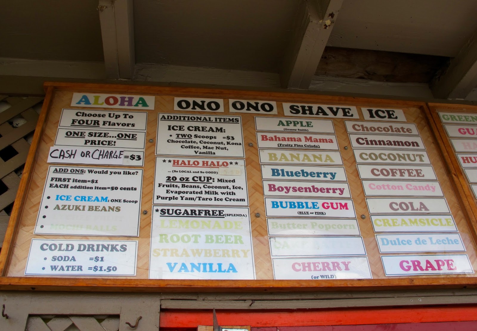 ONO ONO SHAVE ICE – not shaved ice, (if rainbow sugar water is your thing, then definitely get it here) but their rather unnaturally hued taro and coconut ice creams.