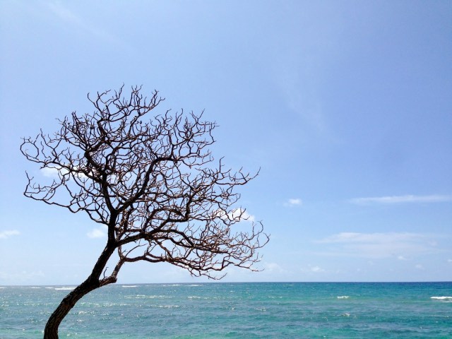 If I tilt my chair to the left, I can see the ocean, which is right behind our hotel. It’s a cute place, definitely on the older side, but has separate living room and a full kitchen, which mom likes, a heated pool (though I think that’s unnecessary here) and hammocks hanging from the palm trees. Just a few steps away (God I sound like a brochure) is a nice stretch of beach, too rocky for some people but perfect for me and the other folks who swim with their head above water, that is, half-heartedly, because we’re not into snorkeling or scuba-diving, and who wants all that salt in their eyes?