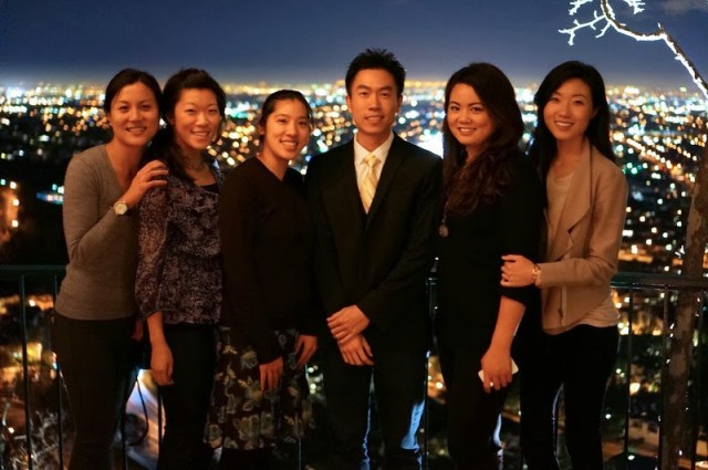 In the evening the entire family gathered at the Orange Hill Restaurant for Thanksgiving dinner after Thanksgiving. My brother and his wife were not there, but they were moving back from Shanghai and would join us for Christmas. We took many photos together, including the one below of the girl cousins and one male cousin-in-law, Lawrence, a new father to a baby girl.