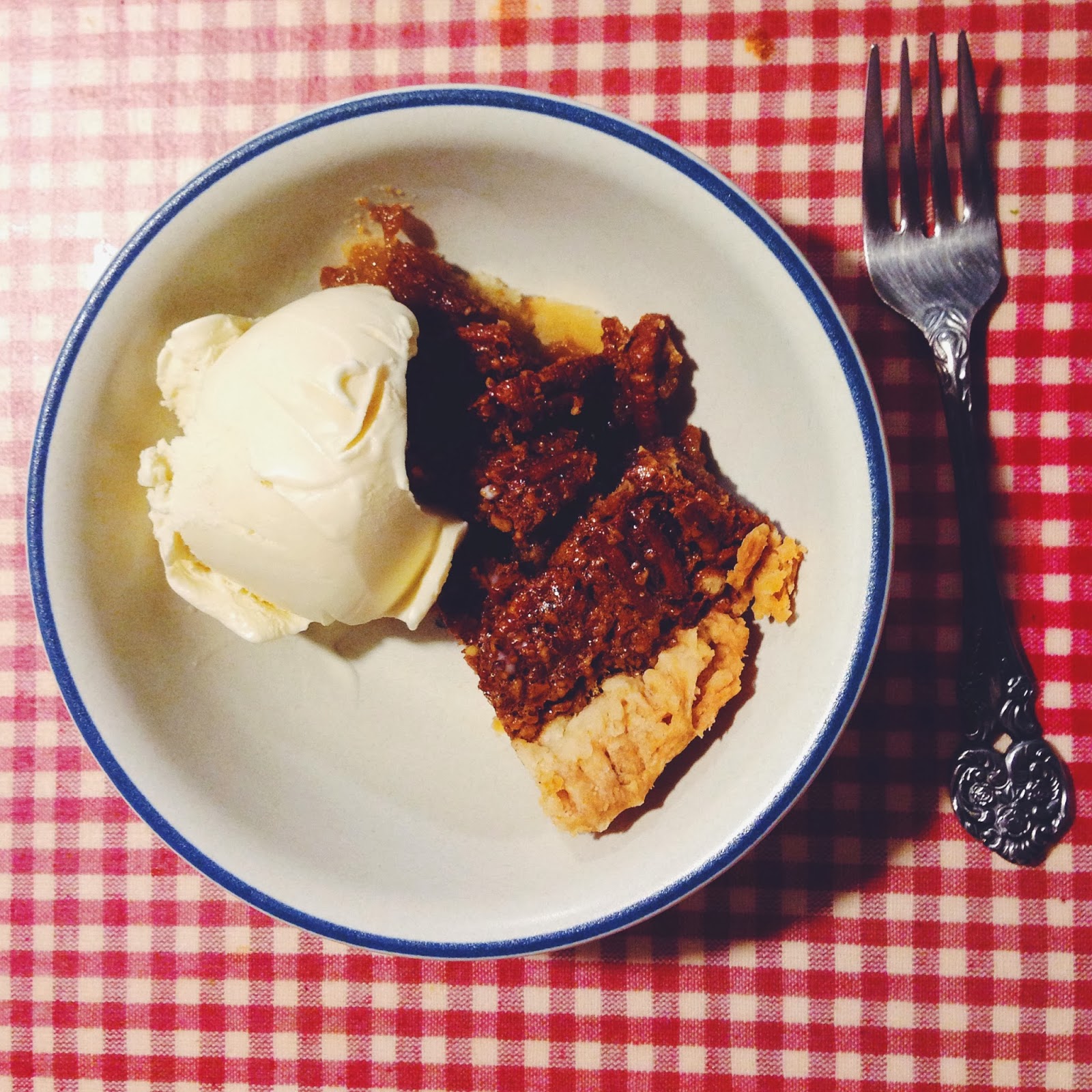 Later that evening, I reunited with my childhood friends in a childhood home for an annual leftover party, in which we simply show up and eat Grace’s leftovers. It is infinitely more scrumptious than I am able to make it sound. Smiling, Grace baked me a pecan pie.