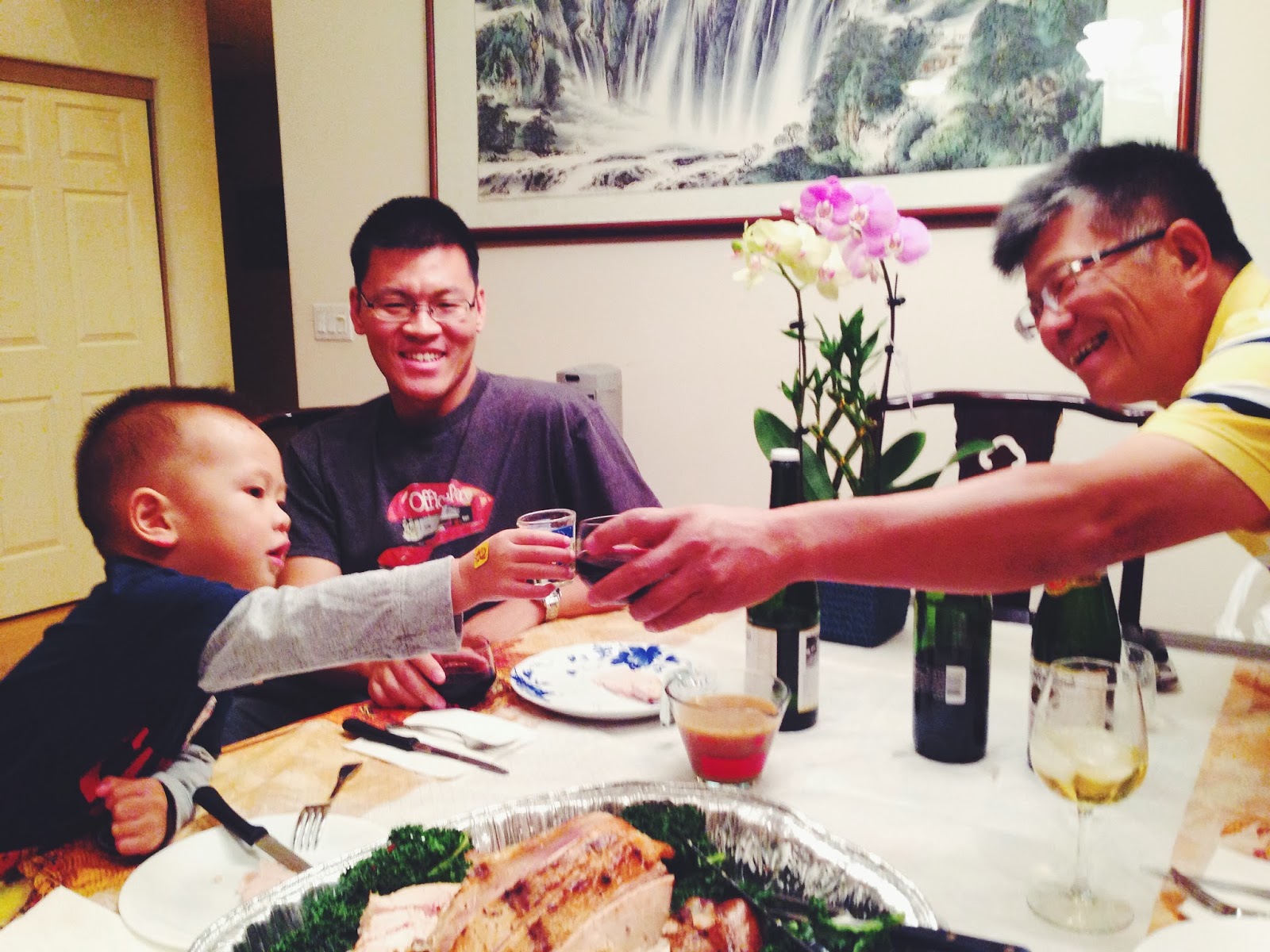 It rained on Thanksgiving day. Loving as my parents are, they had other plans for Thanksgiving dinner, and I found (or invited myself) to dinner at uncle Jimmy’s house. I picked my grandfather up at 6PM. He had not wanted to go, preferring (outwardly) to stay home alone. Thanksgiving was very close to his wife’s passing and was the first holiday he spent without her. But he came with me and was seated next to the youngest member of the family.
