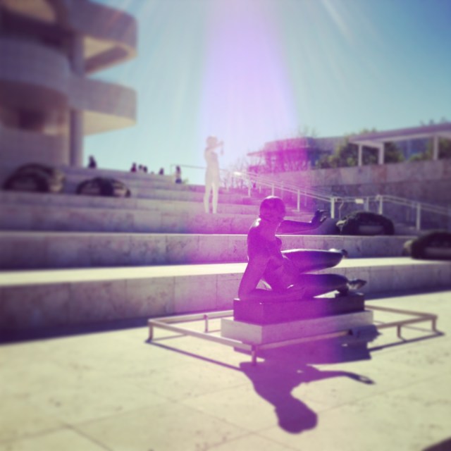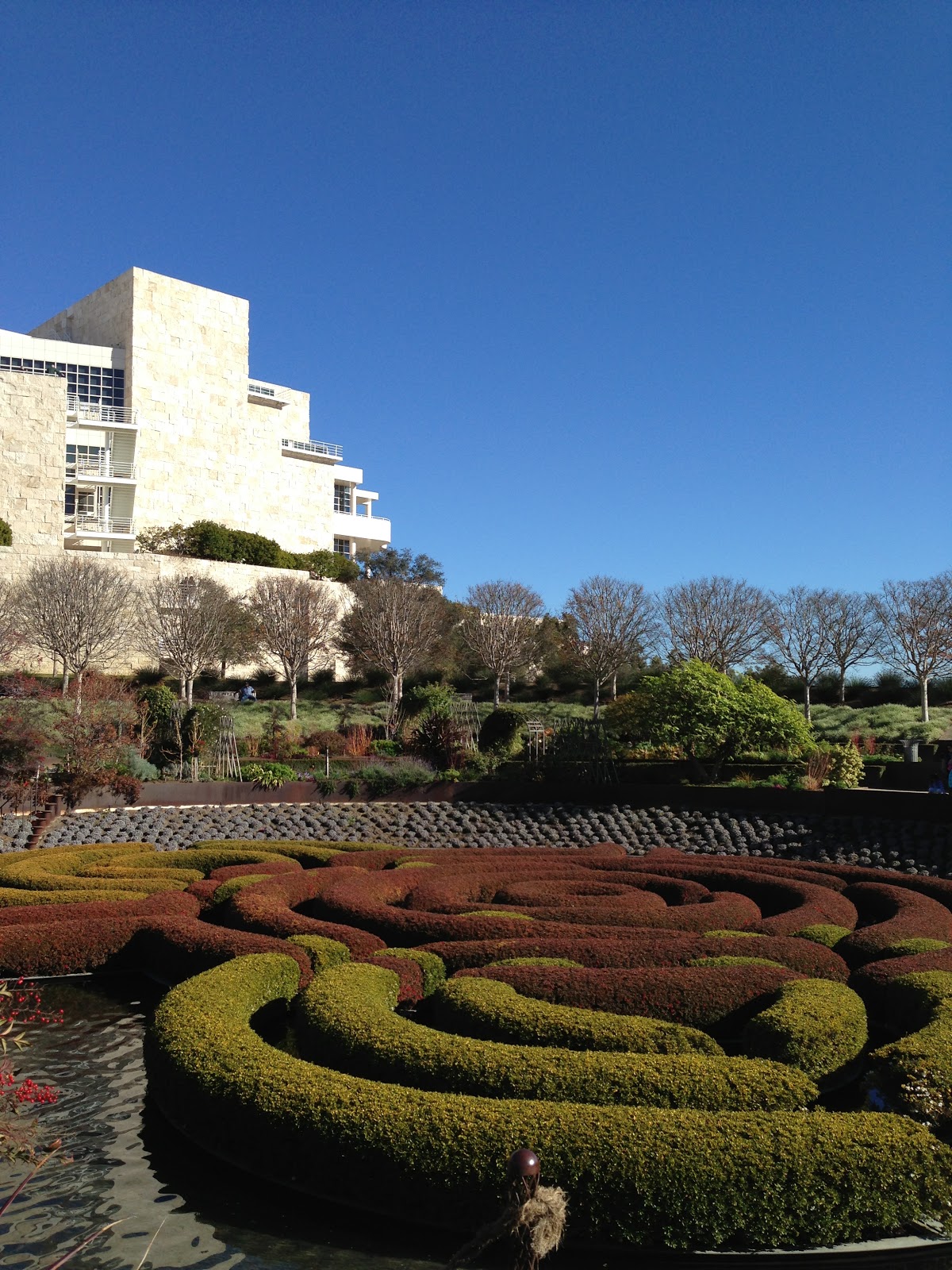 An hour or so later she asked again and I wondered if she had forgotten that the center was built in the early 90’s and that it was not one of those eerie mysteries such as Stonehenge or Easter Island, but I had to admit the building itself had an ageless quality about it. My grandmother busied herself photographing everything that caught her eye, from the buildings to the tiniest succulents that looked up at all who walked by, to indolent, confused poodles who sat sunning themselves on the pale pink tile stones. Young children squealed about, running up the wide flat steps, swinging from the handrails, and then rolling down the wide expanse of lawns. We saw young couples on well-intentioned “let’s do something cultural” dates, young people dragged there by their parents and young college students back for winter break trying to place what they’d learned in their very first art history survey courses. We saw elderly couples wearing comfortable shoes, sweater vests and blazers who in their retirement rediscovered the leisure necessary to truly enjoy art and who made up the bulk of the guided tours. From them I made a mental note to enjoy my old age. We heard German, French, Italian, Korean, and of course Chinese being spoken around every bend, and marveled at various sculptures and the shape of Robert Irwin’s Zen.